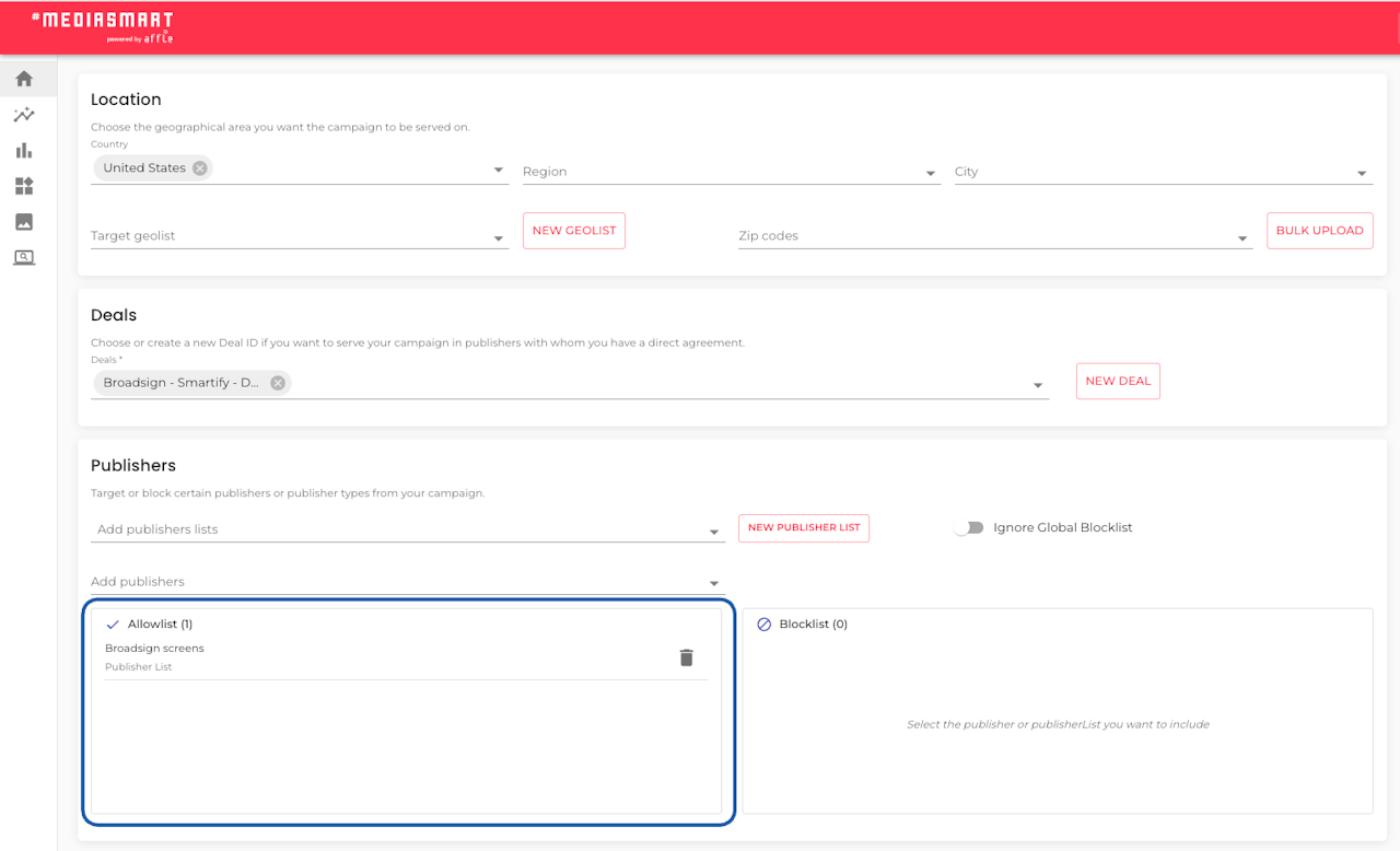 Go to the Targeting area, Ad Exchanges section and select Broadsign.