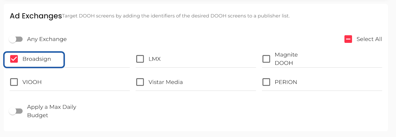 Select Broadsign as AdExchange