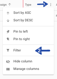 Click on each column's header ellipsis and then filter.