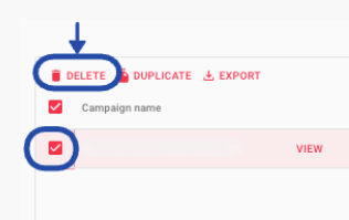 Select the campaign or campaigns you want to Delete
