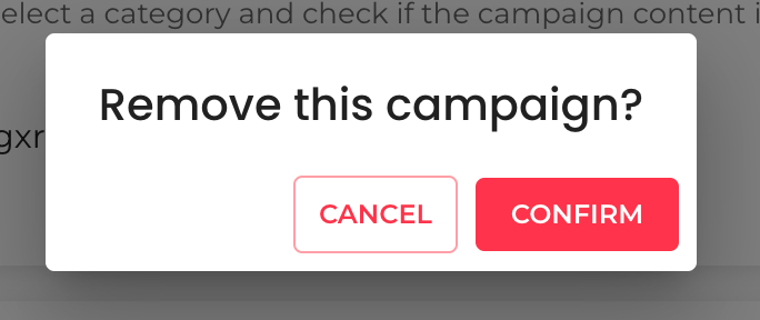 When you click on Confirm, the system will erase the campaign and notify you it has done so with a green toast notification.