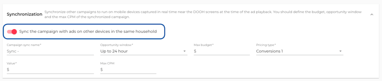 To start the process, you will need to click on the 'Sync the campaign with ads within the same household' switch.