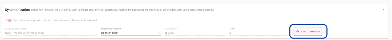 A new button --> Sync campaign will appear on the Synchronization section, to allow you to jump between the CTV campaign and the Synced campaign.