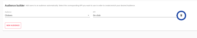 If you decide you do not want to gather more information for your Interaction-based audience, you can always stop building the audience by clicking on the 'Garbage icon' at the end of the corresponding audience.