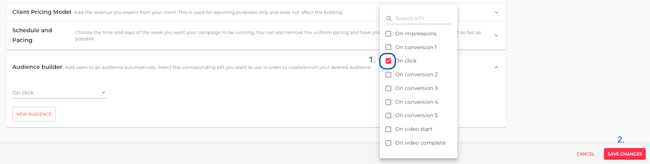 5. Select the new audience to pair it with a KPI in the drop-down menu that will appear.