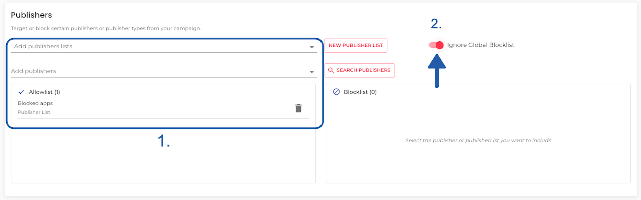 Ignore Global Blocklist: Target publishers included on your organization's global blocklist, by telling the system to ignore said blocklist.