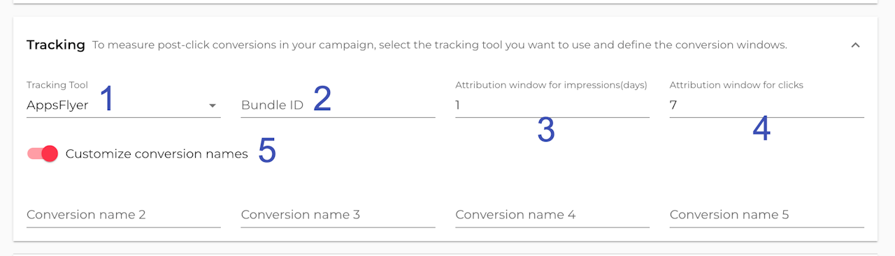 (Optional) Add a custom name to conversions 2-5.
