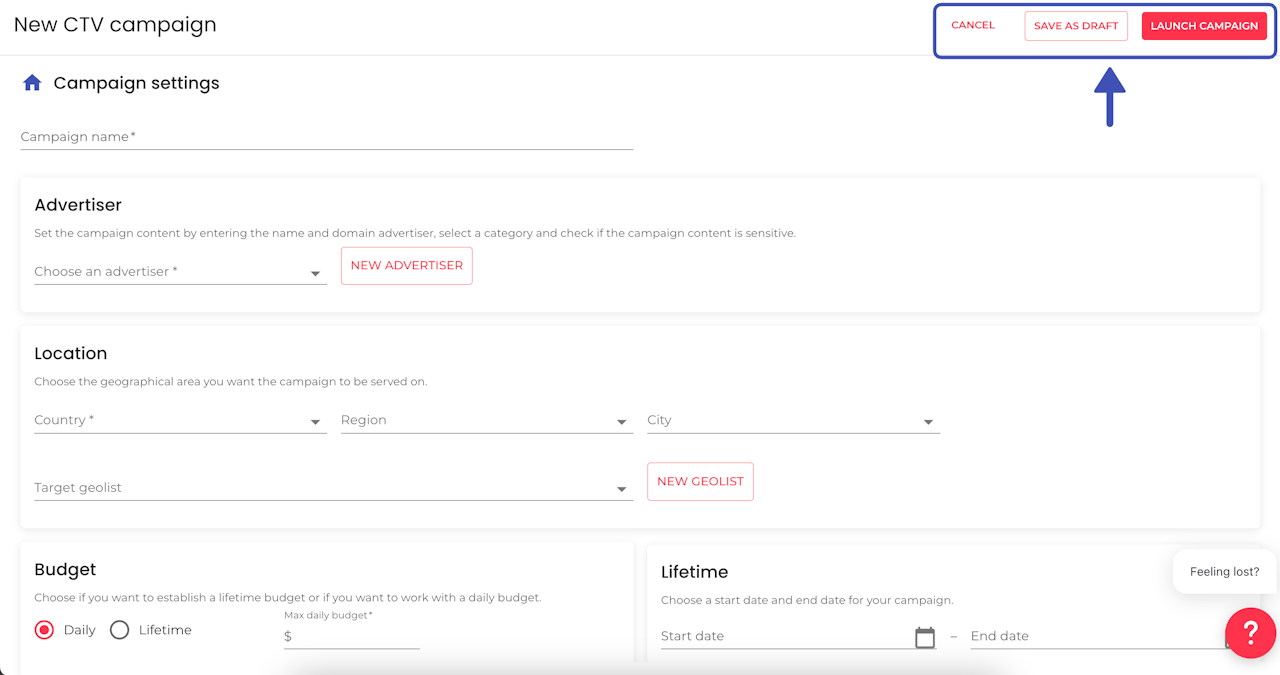 The launcher will adapt itself to the type of campaign you want to run, you can create: