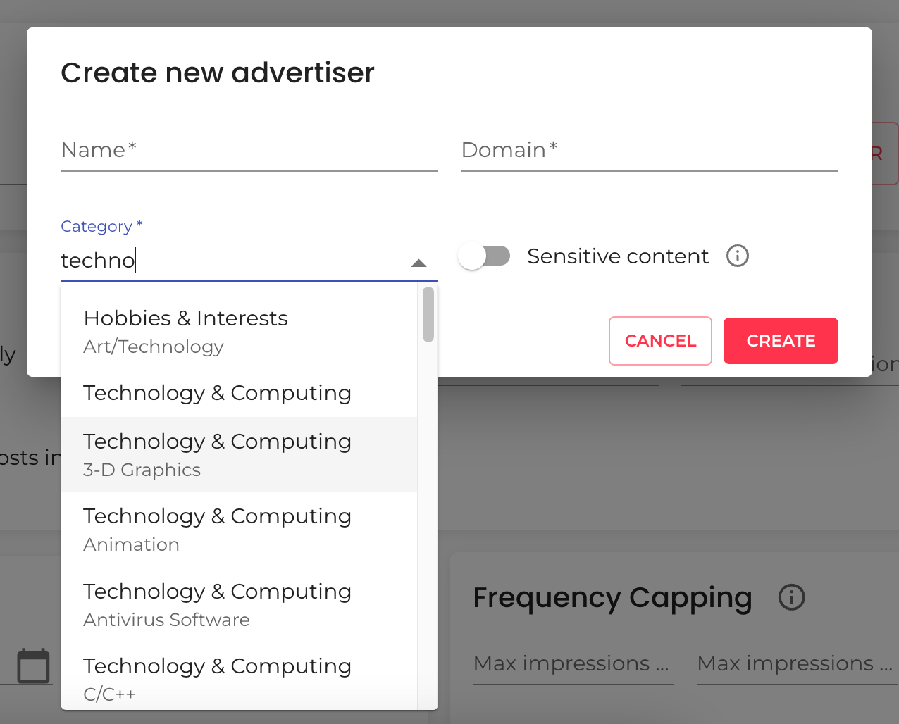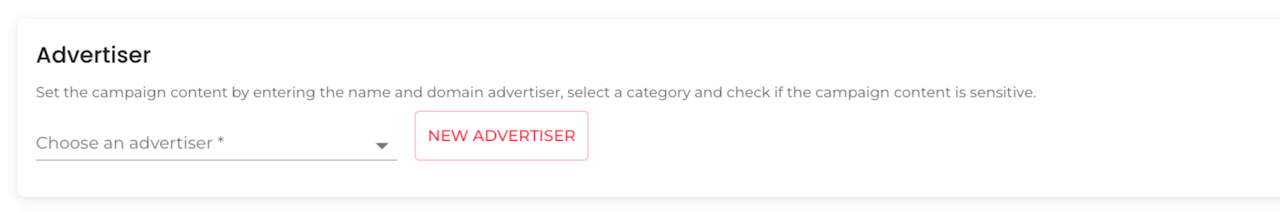 When you click on the 'New advertiser' button, a menu will appear for you to create a new advertiser.