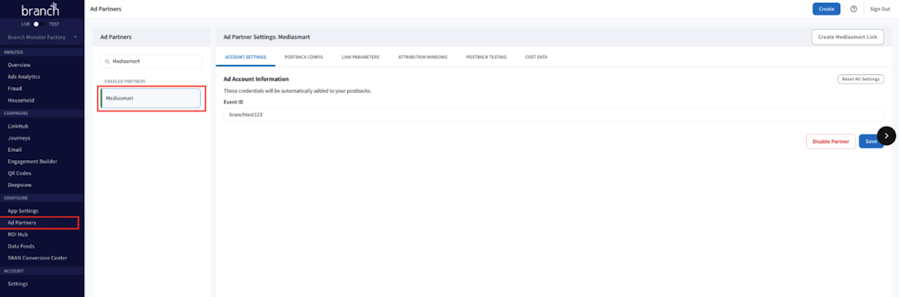 1- Select mediasmart as Ad Partner