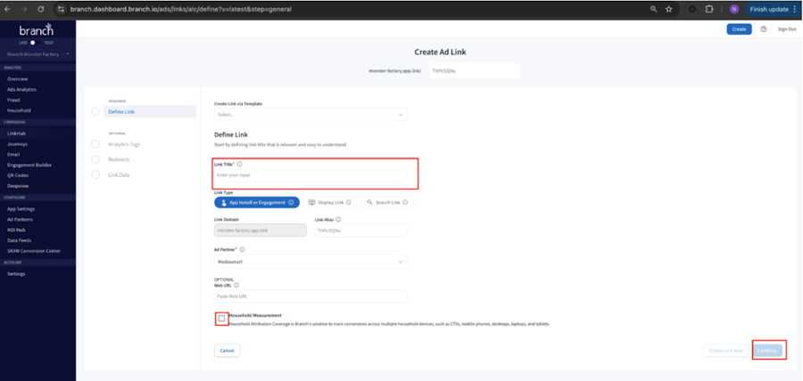 Link Title.Ensure you check the "Household Measurement" option before continuing and completing link creation steps.