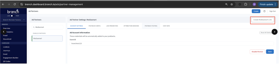 Go to Ad Partners in your Branch dashboard and select your desired partner.
