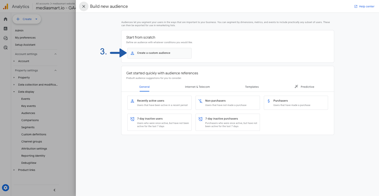 This guide explains how to create audiences in your Google Analytics 4 (GA4) to track, on your website, the behavior of the users coming from a mediasmart CTV web sync campaign.
