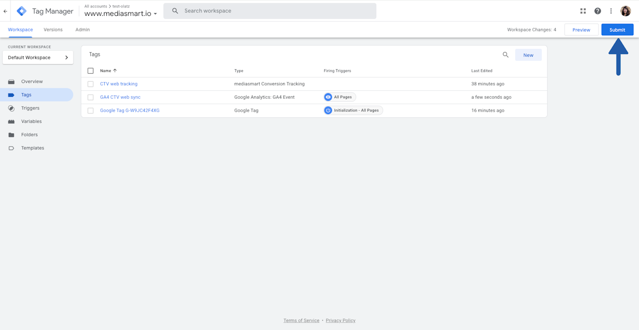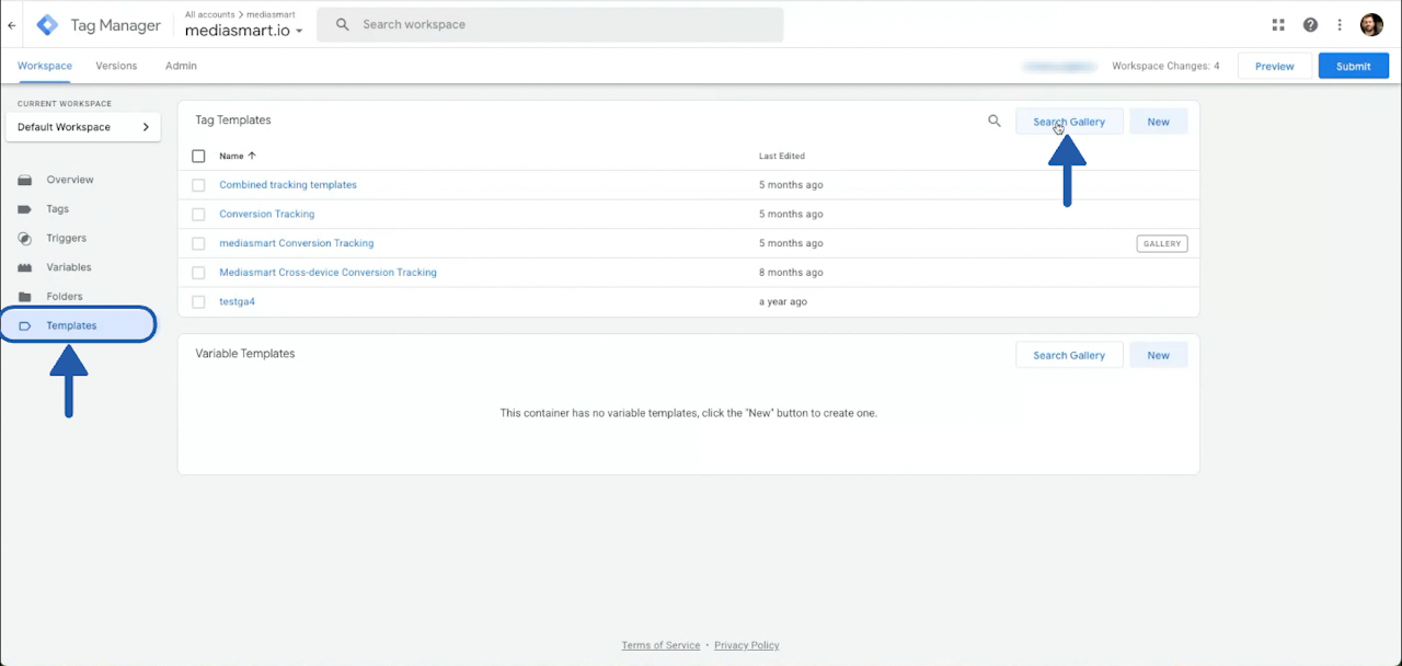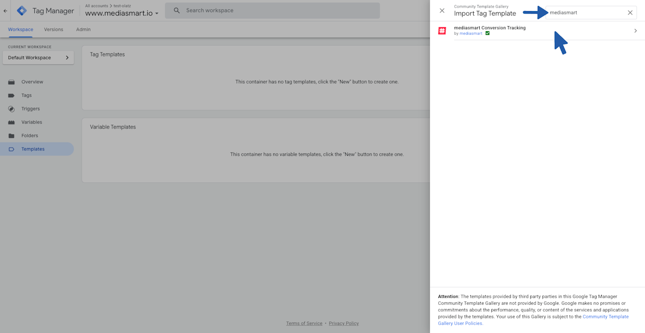 Once correctly added, you will see the 'mediasmart Conversion Tracking' tag template as part of your tag templates.