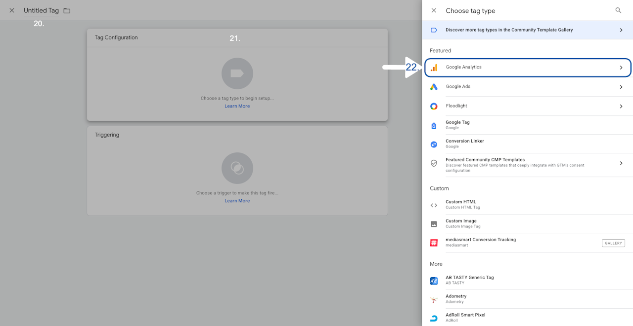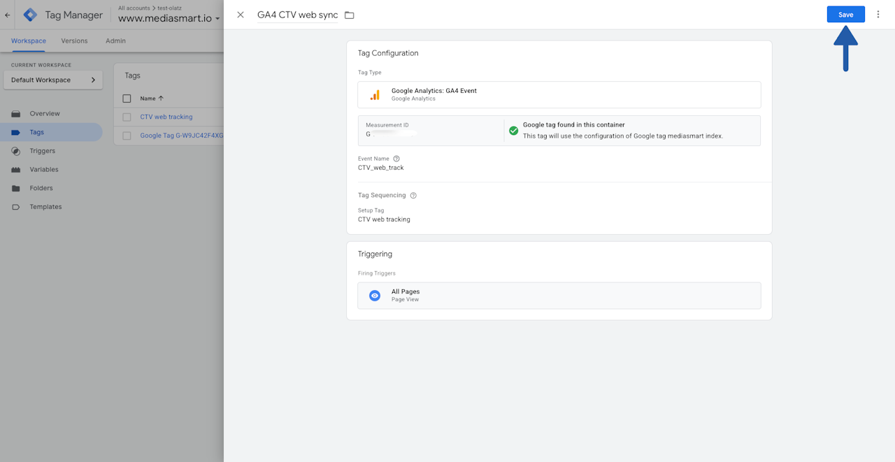 Under Setup Tag, select the previously created mediasmart Conversion Tracking tag