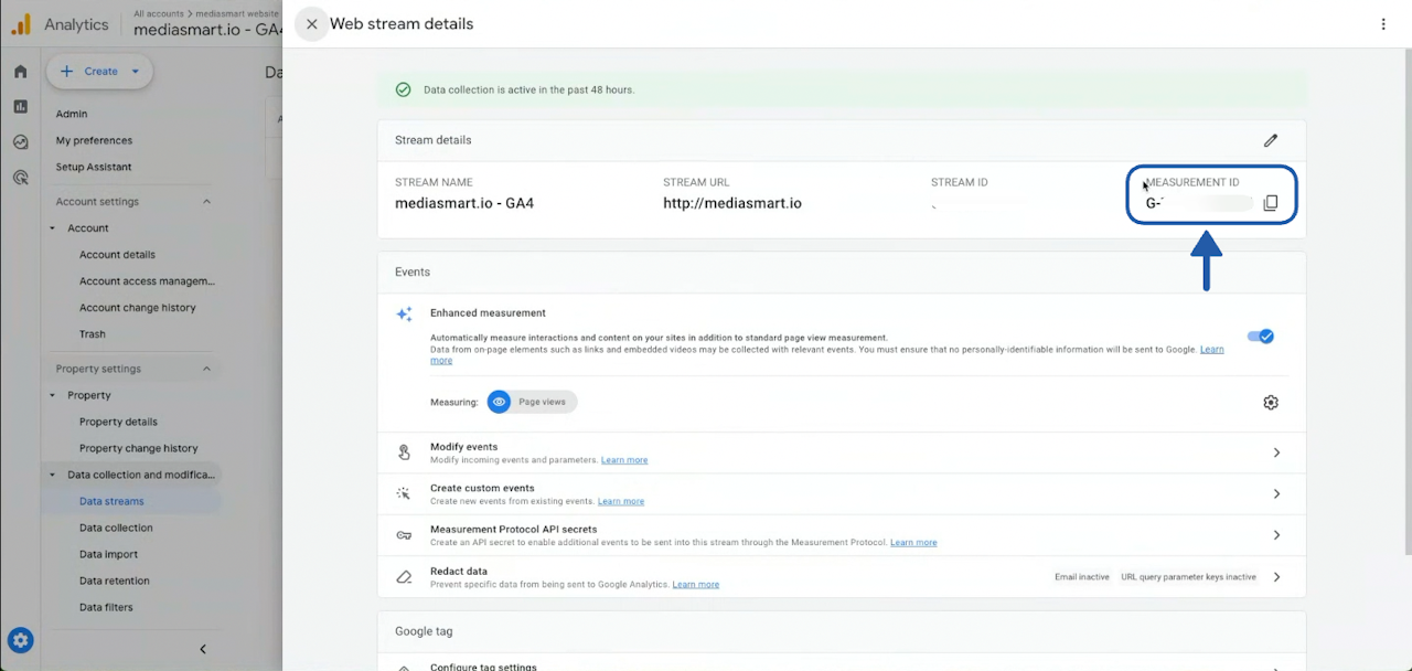 G-. You can find it in your Google Analytics account under Data Streams → Web streams, following these steps.Google will validate the measurement ID. Follow instructions next to the placeholder to troubleshoot.