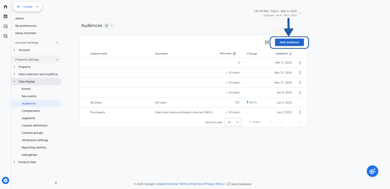 Open Audiences, by going to Settings > Data Display > Audiences.