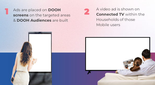 DOOH audiences can be used as the base audience in a cross-screen strategy on Connected TV, where the system will target the mobile users that exist on a given audience on their Connected TV.
