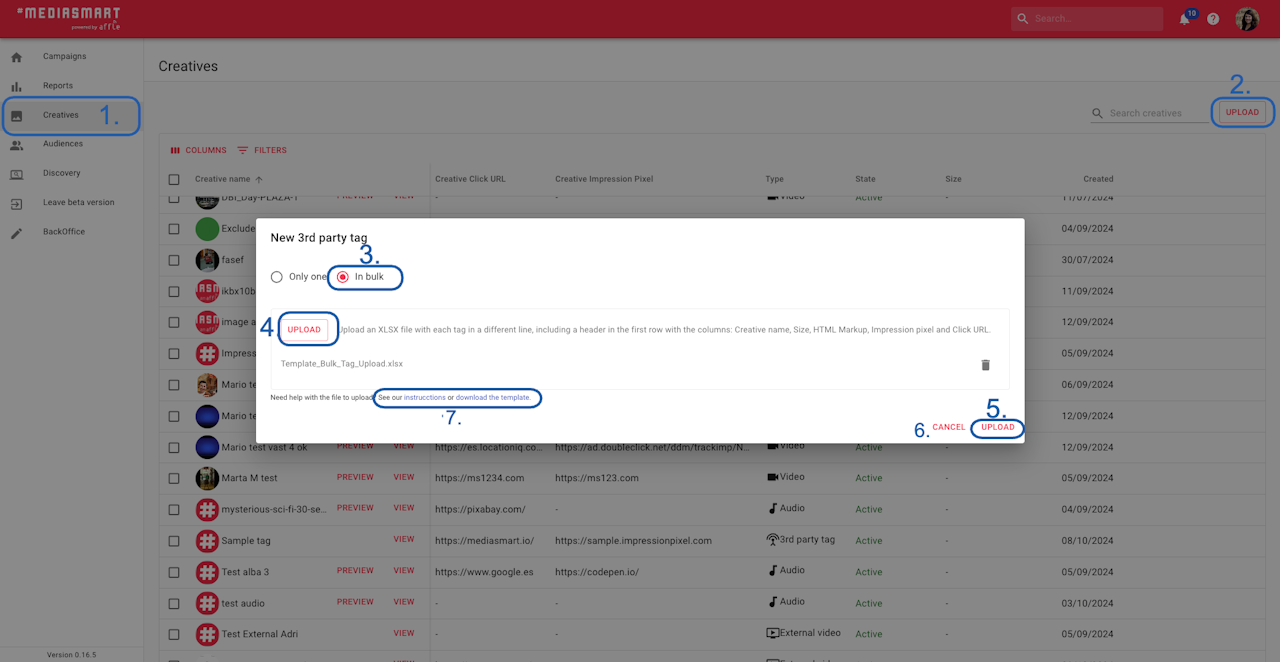 If you need to upload several tags, instead of uploading them one by one, you can bulk-upload them.