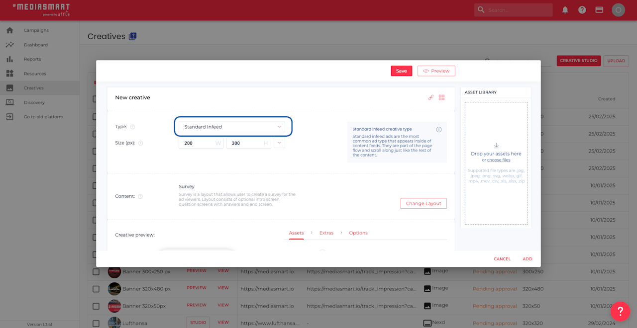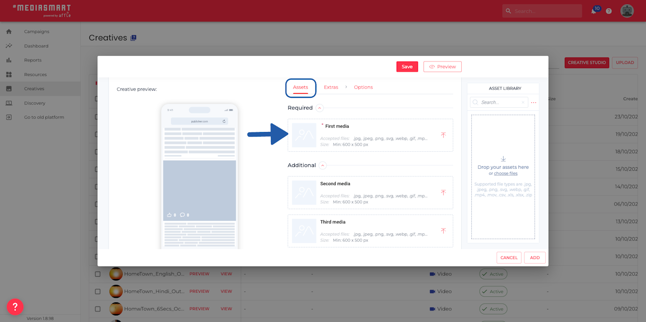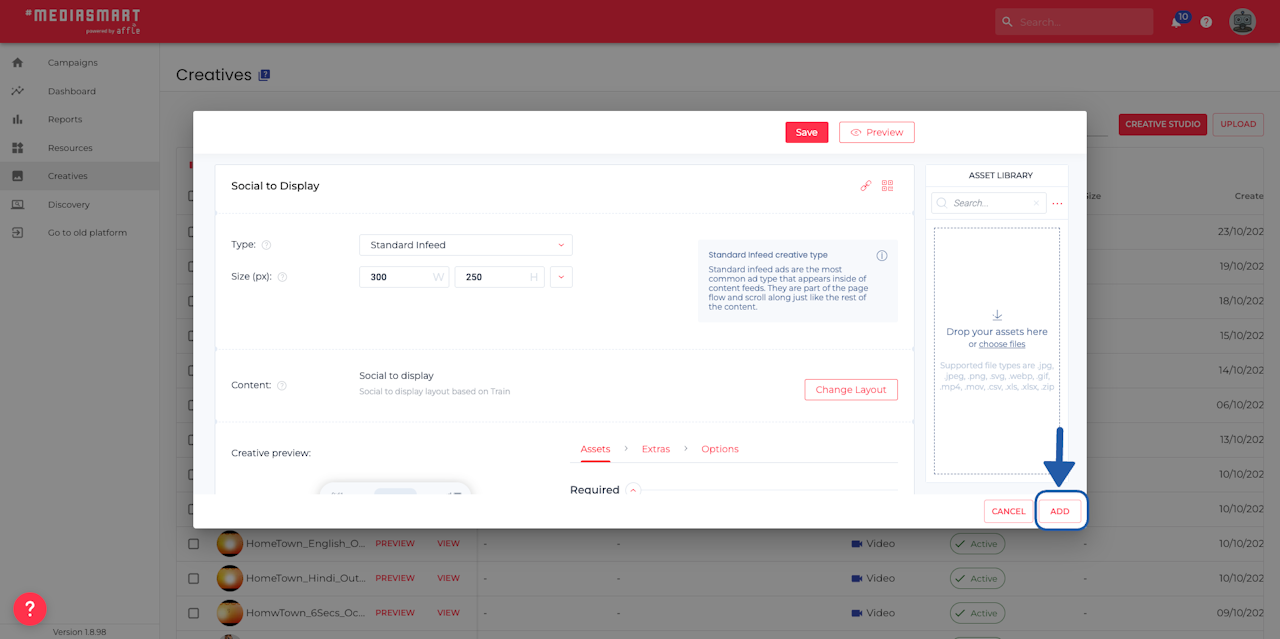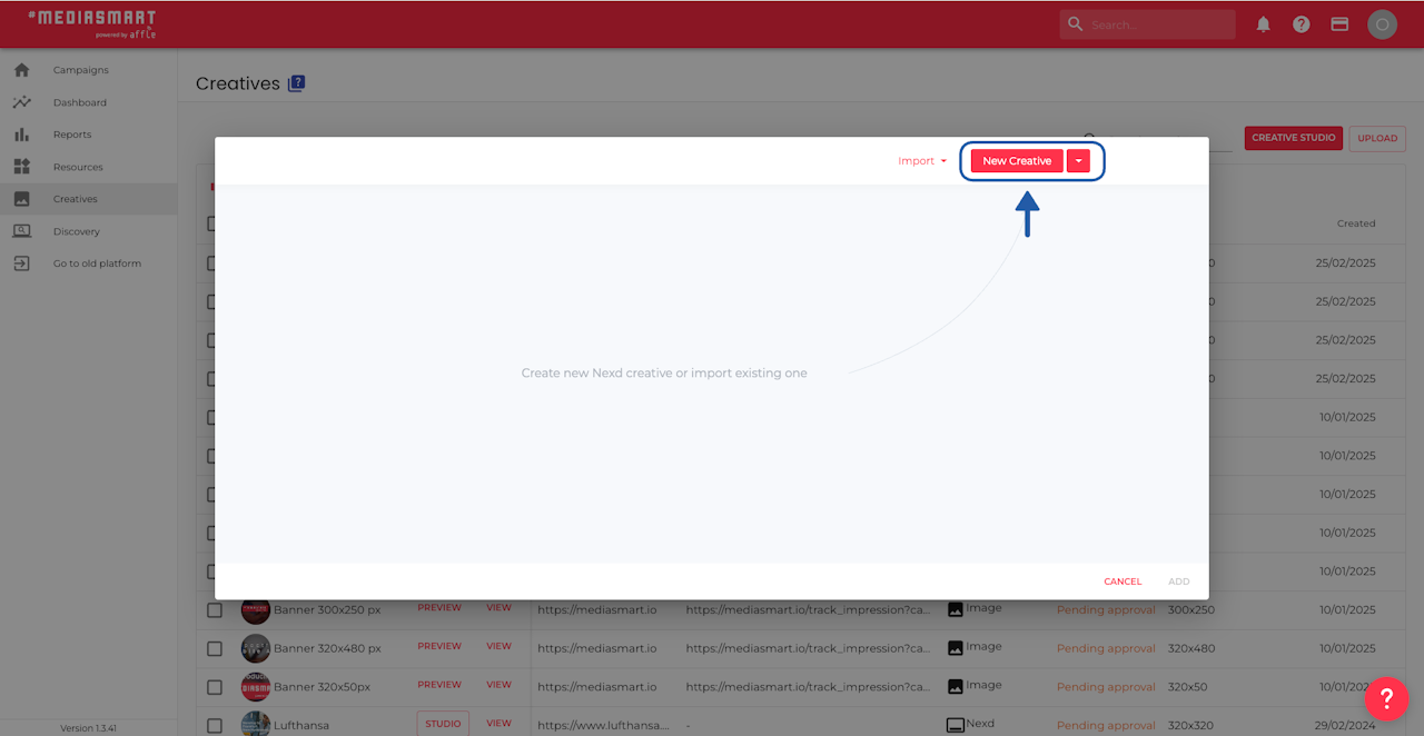 Go to the Creatives section of the platform,