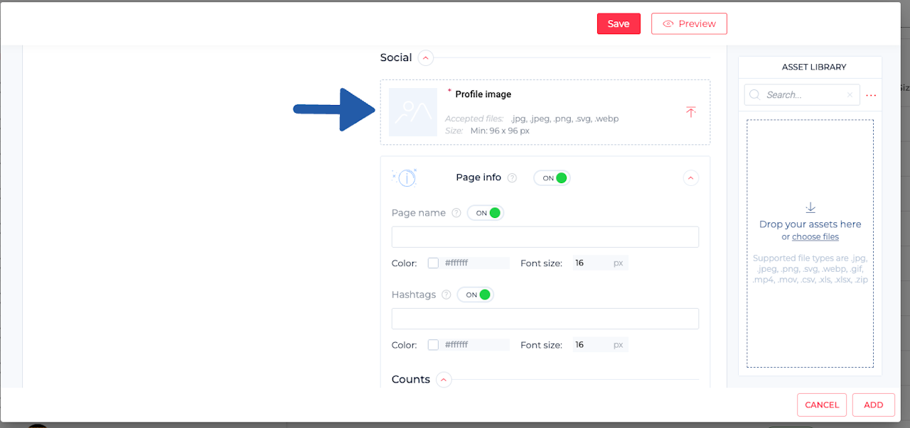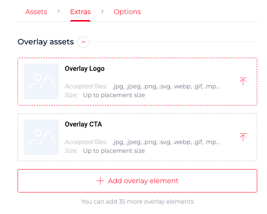 Overlay assets: They’re useful for layering ads with images, linking to multiple social accounts, or adding overlays like transparent frames.