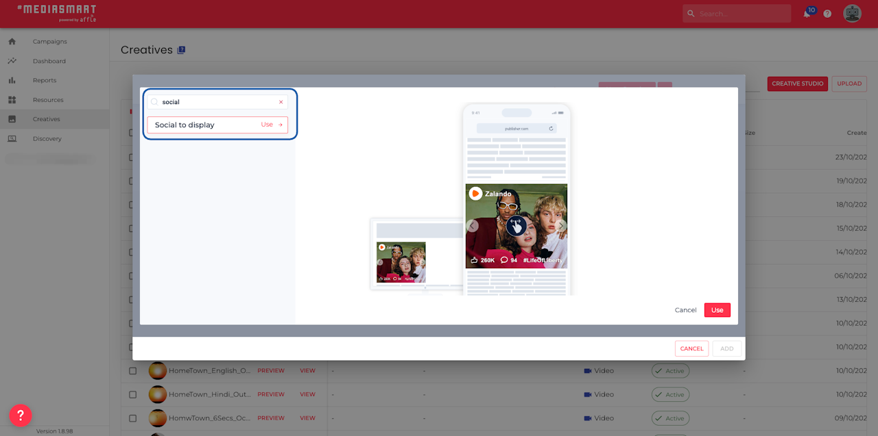 It’s very simple to generate a Social to Display ad, where users can respond directly within the ad, with our Creative studio.