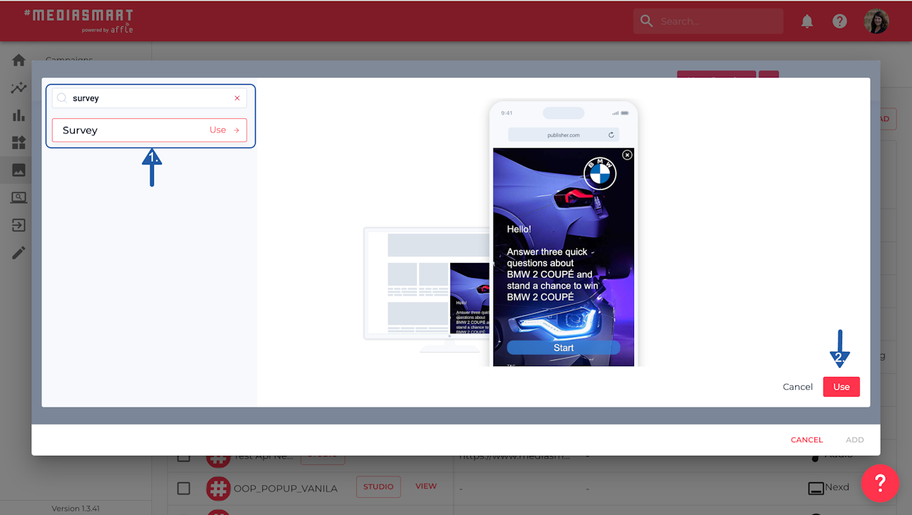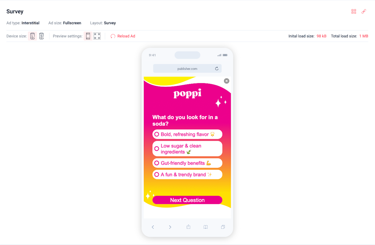 It’s very simple to generate a Survey ad, where users can respond directly within the ad, with our Creative studio.
