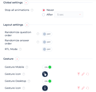 Question styles (HEX color, opacity, and size of the questions and choices)