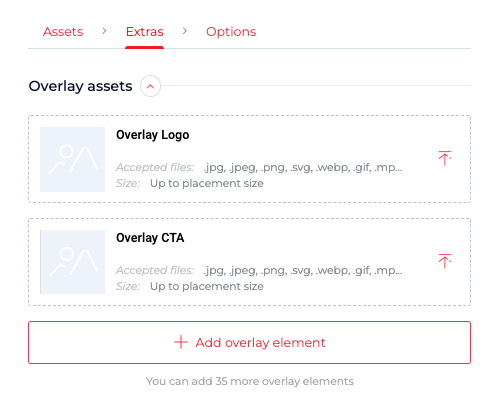 Overlay assets: They’re useful for layering ads with images, linking to multiple social accounts, or adding overlays like transparent frames.