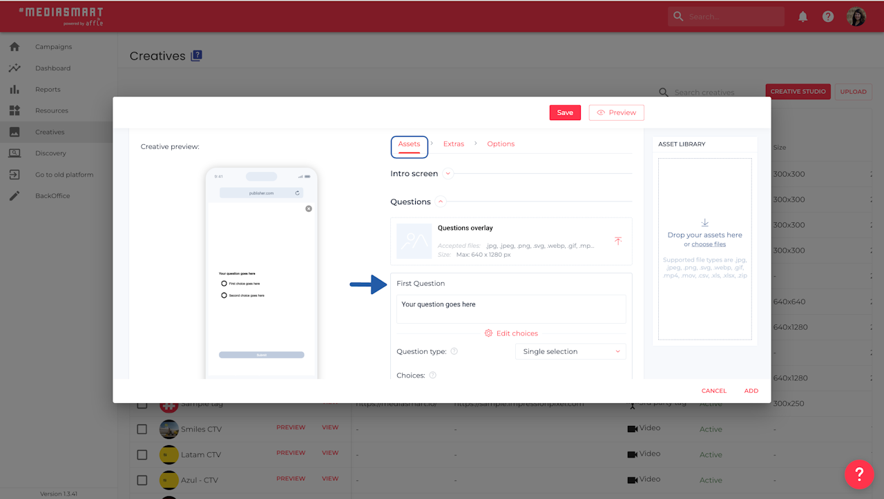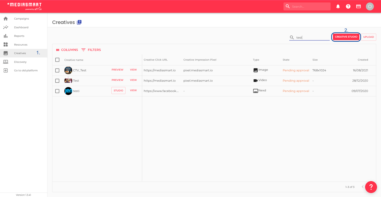 Go to the Creatives section of the platform,