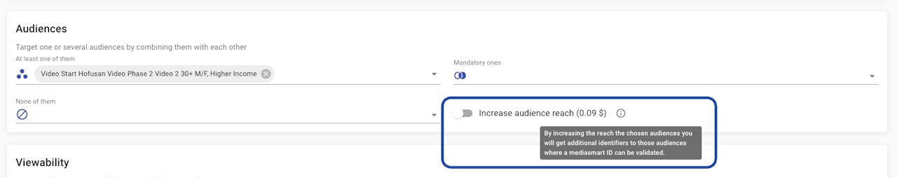 It will appear as an option when a campaign is targeting an audience within any of the rule fields: all of them, one of them, or none of them.