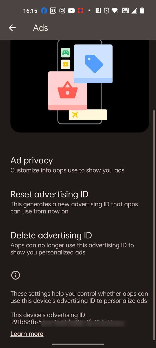 Your ID is the one under "Your advertising ID" (please note that the above screenshot may vary depending on your Android version)