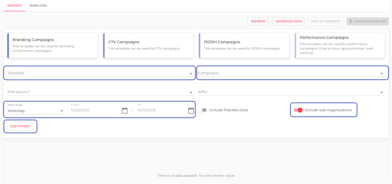 You will get the following data on the browser or download: the KPIs drilled down by the variables you selected for all your campaigns.
