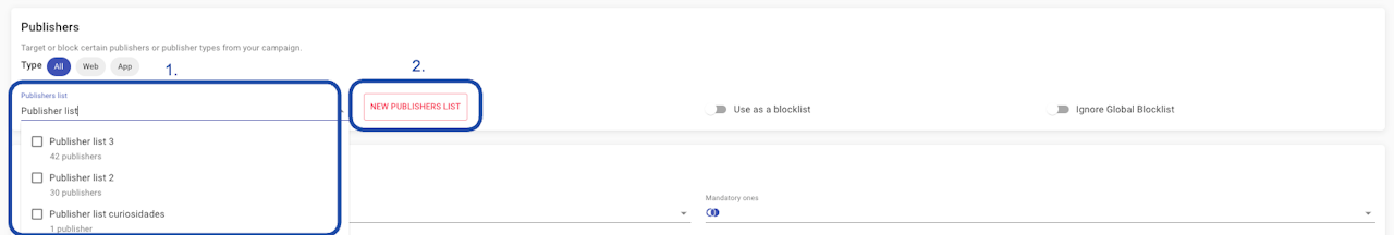Once the system generates it, to use it, you will need to select it on the drop-down menu of the Publisher targeting section on the campaign you want to use it.
