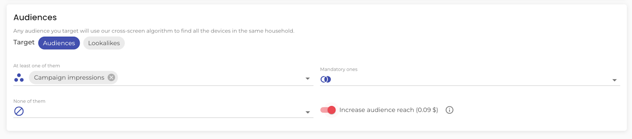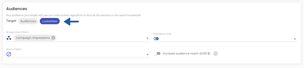 b. (Recommended) Target lookalikes of the exposed group by simply adding the exposed audience and selecting 'Lookalikes'. The system will automatically exclude the original audience and focus on finding new, similar users instead.