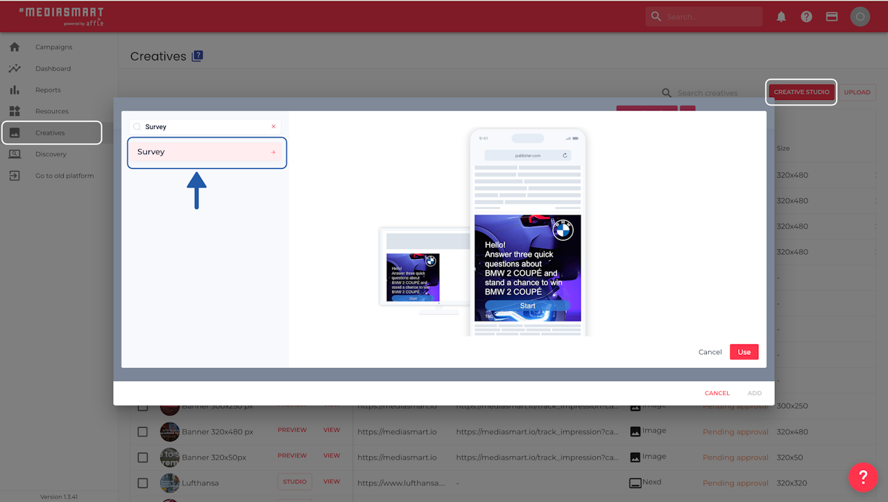 Go to the Creative Studio in Creatives.