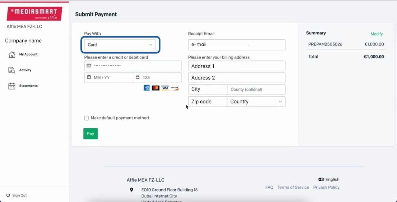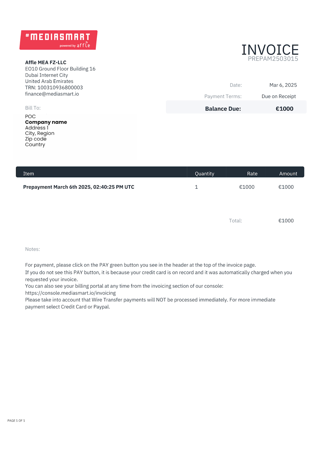 Pay it from the e-mail you will receive from finance@mediasmart.io.
