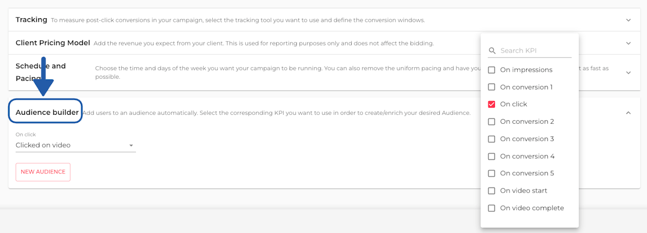 Generate it from the Audiences tab within the Resources section, and then link it to the corresponding KPI in the Audience Builder.