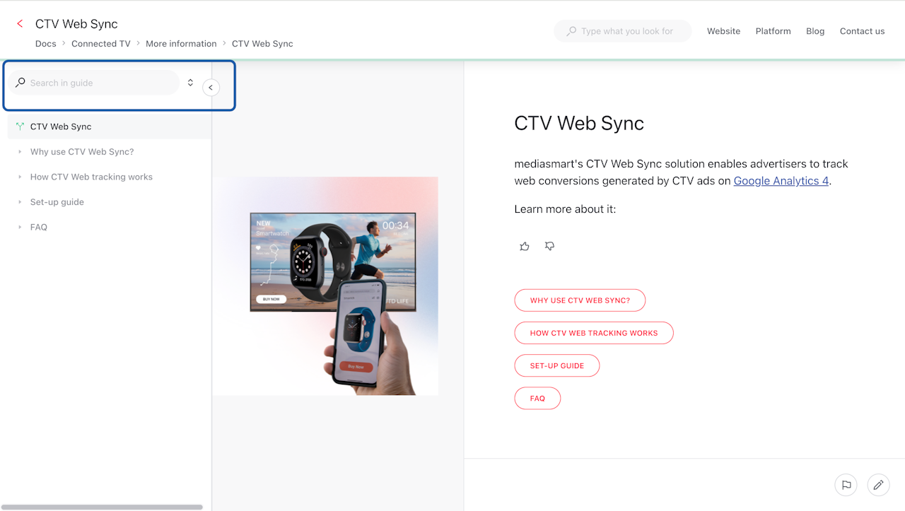 Docs update to include a table of contents in each guide and a search function to find information faster.