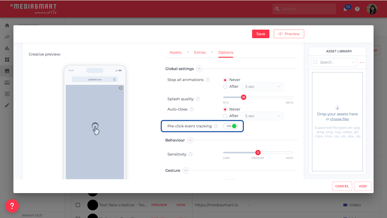 We’ve added a toggle in the Creative Studio to enable pre-click conversions for Rich Formats! Actions like scratch, move, or rotate can now be measured automatically. These will appear in reporting as Conversions 2.