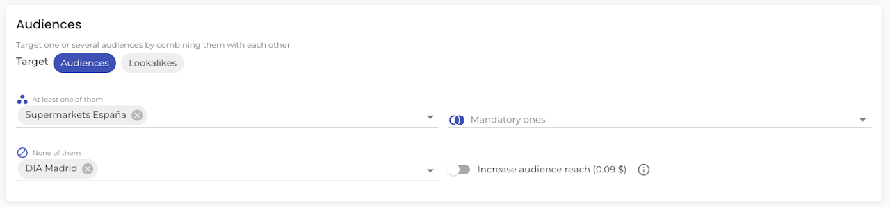 Like in the example, you could target those users who went to different Spanish supermarkets, except those who went to a particular brand in Madrid.
