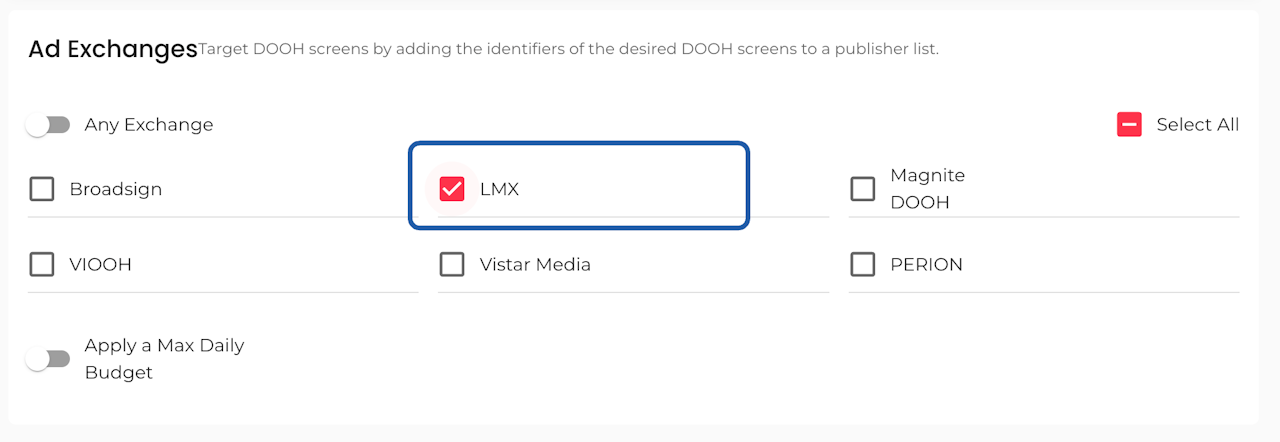 Select LMX as AdExchange