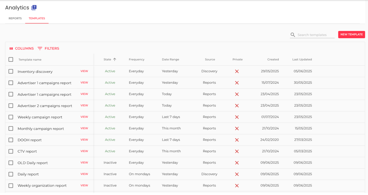 You can filter the displayed Templates by: