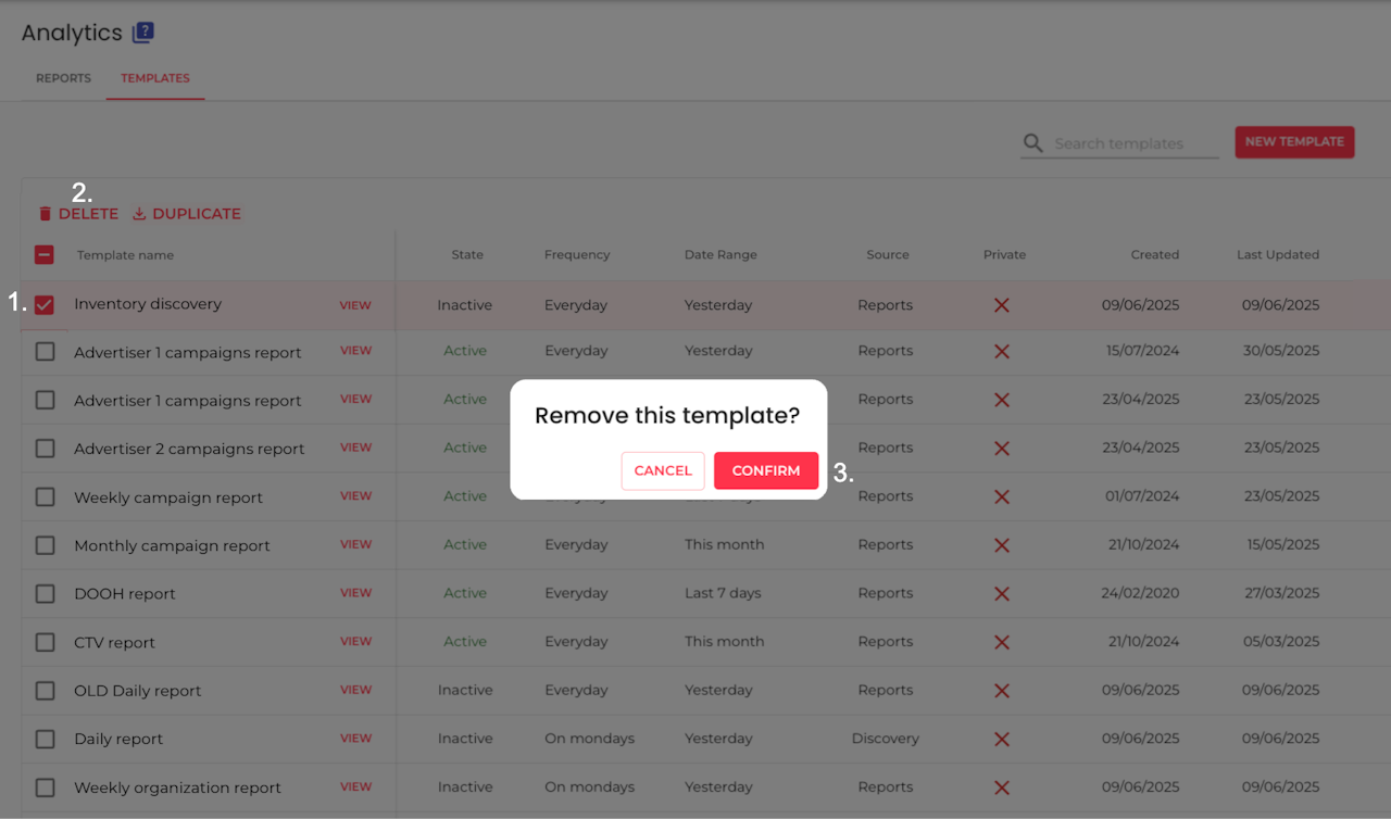 Select the template(s) you want to erase