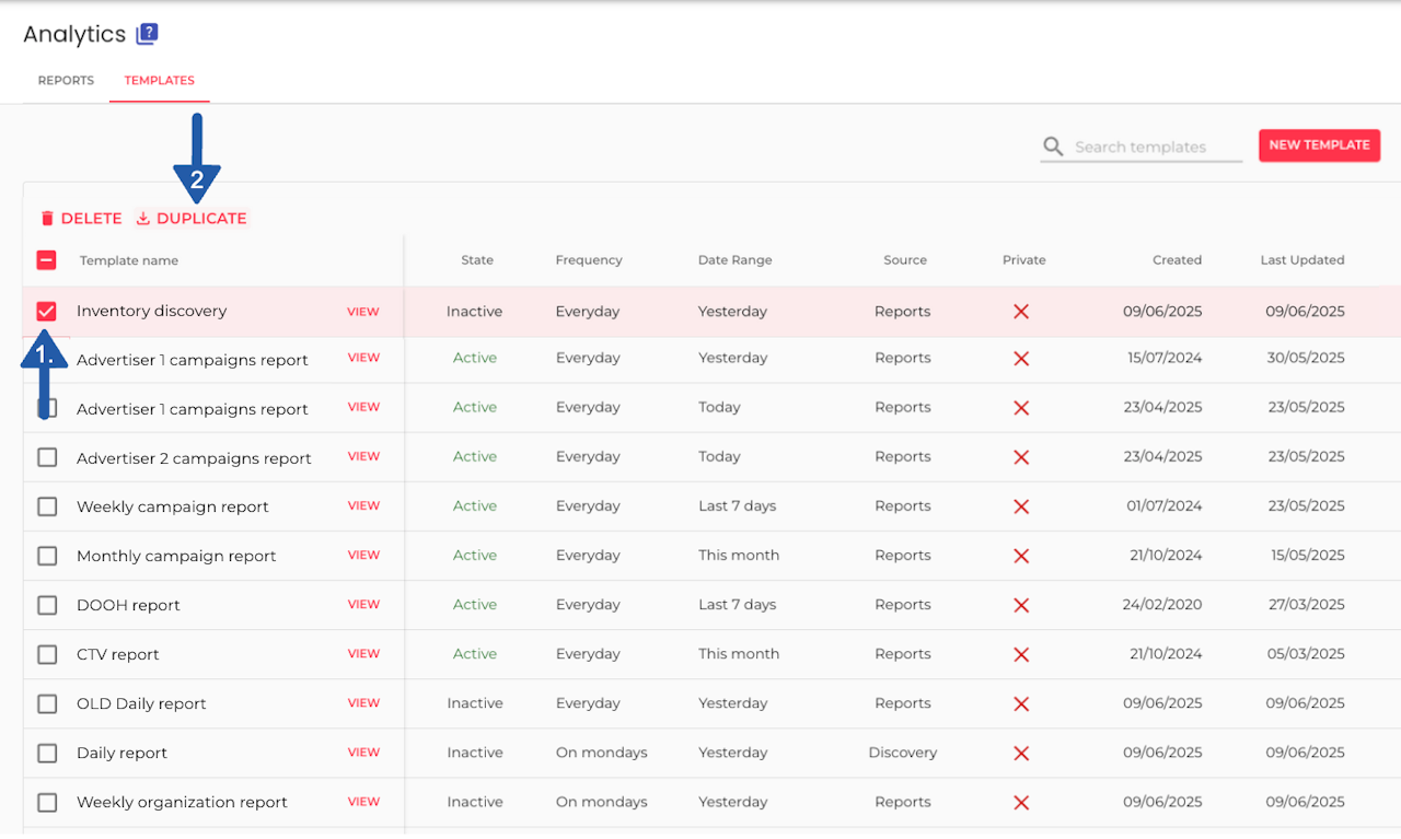 Select the template you want to duplicate