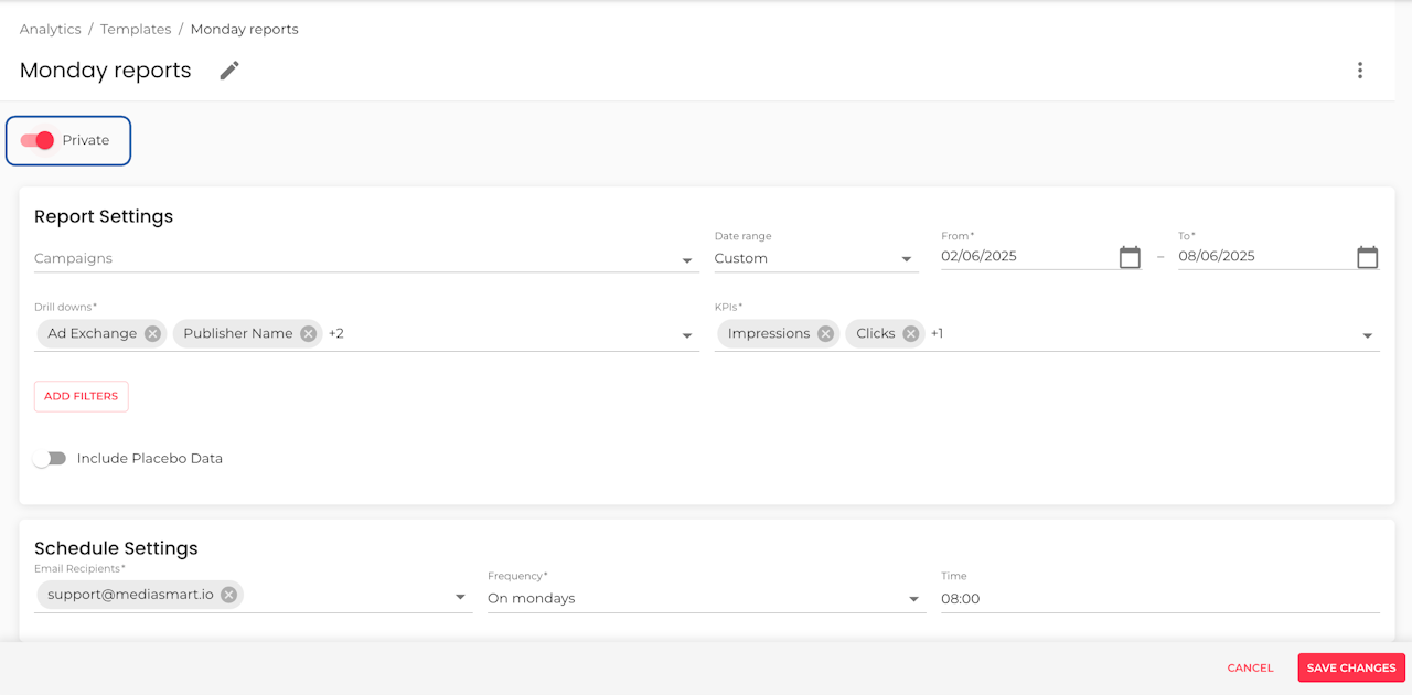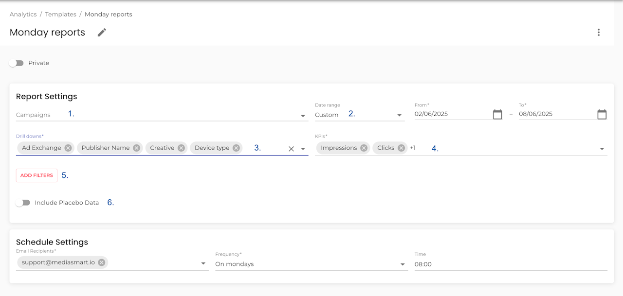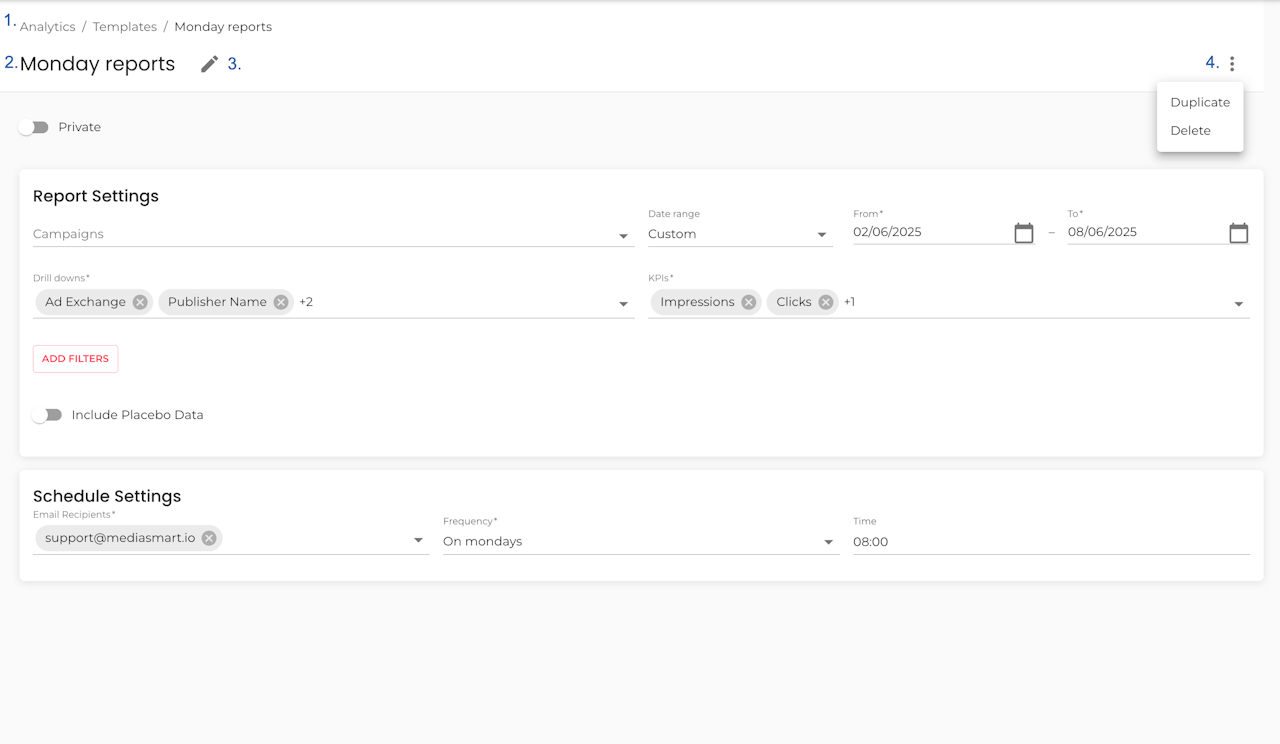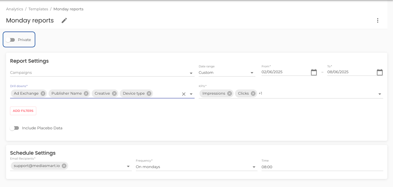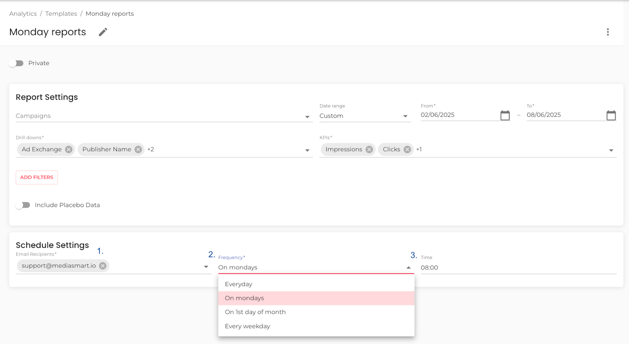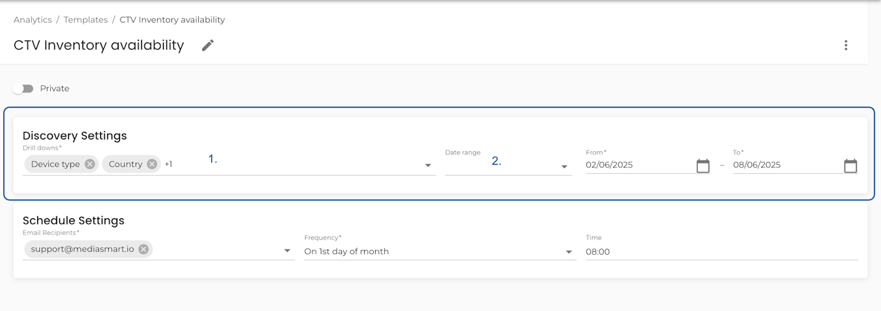 Whether it is a Discovery or Reports template, you can schedule it to be delivered to your inbox daily, weekly, or at any interval you prefer.